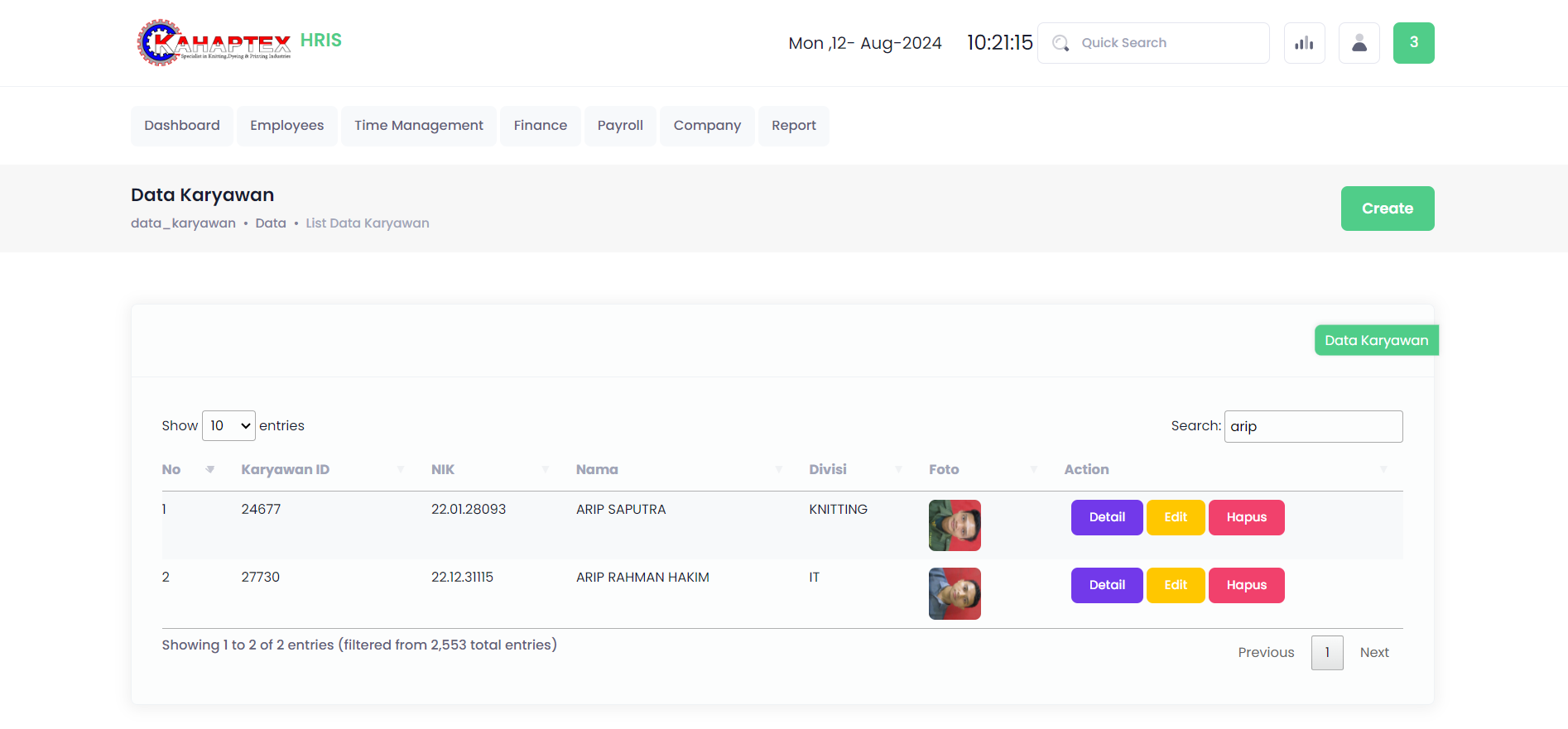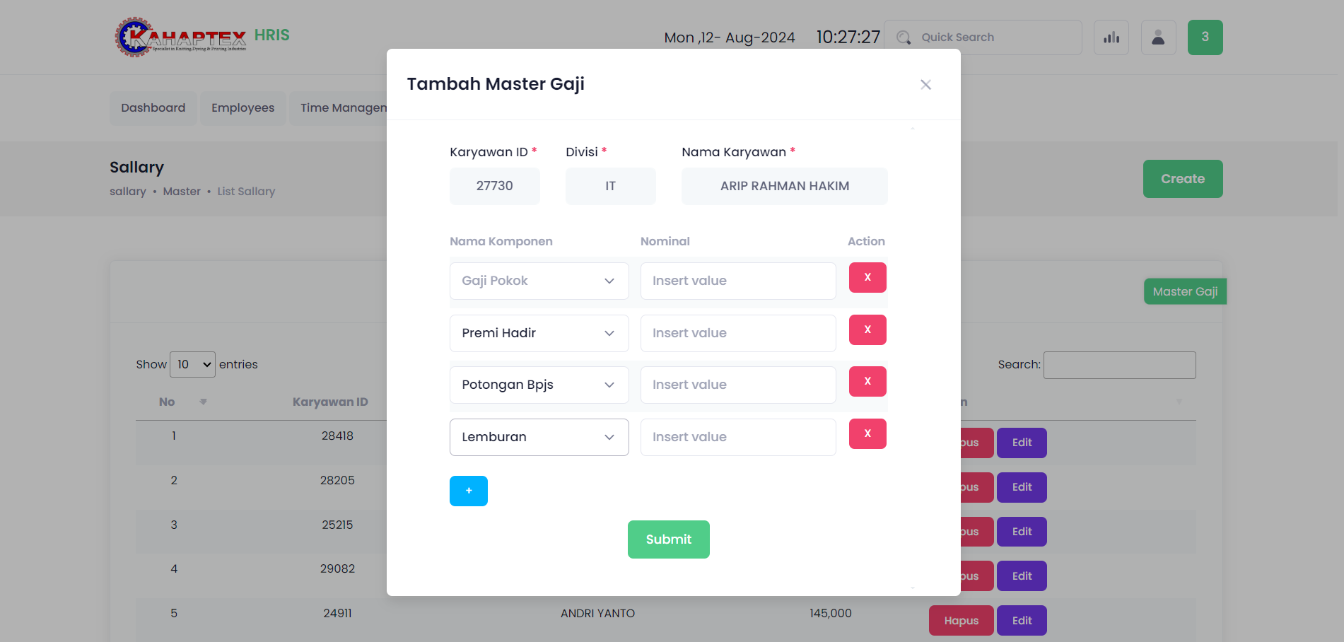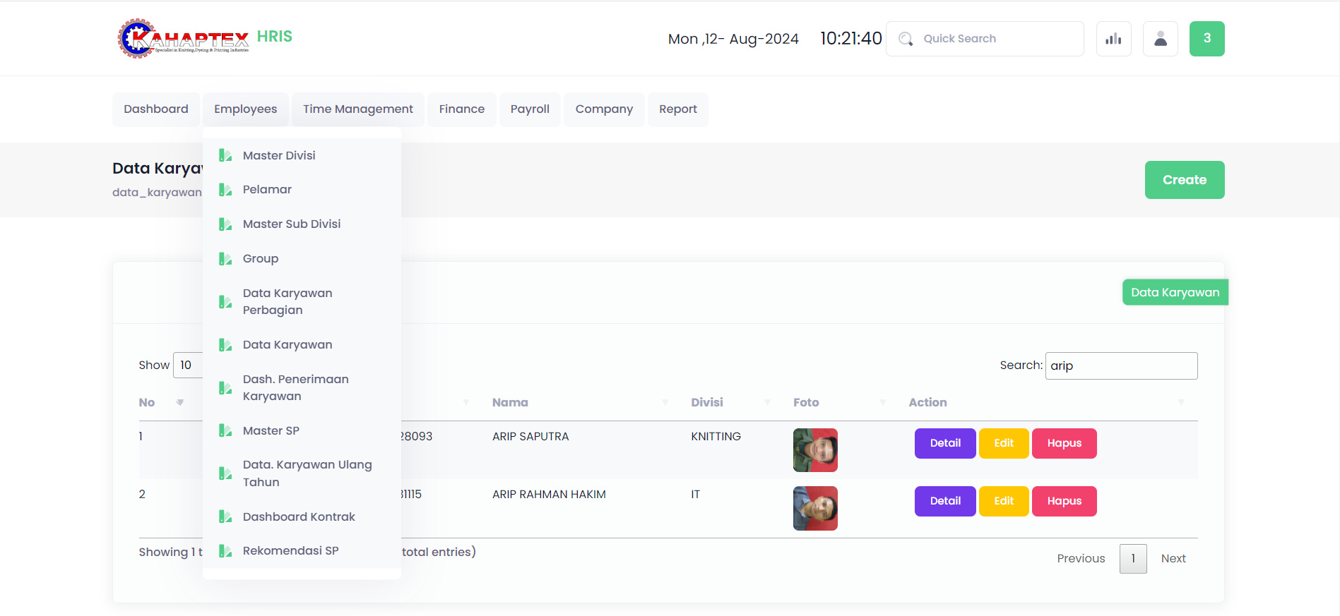 HRIS adalah program HRD yang telah di-recoding dari PHP native ke framework CodeIgniter 3. Dengan desain yang menarik dan fitur-fitur yang lebih sederhana, aplikasi ini juga dipadukan dengan jQuery untuk meningkatkan pengalaman pengguna.