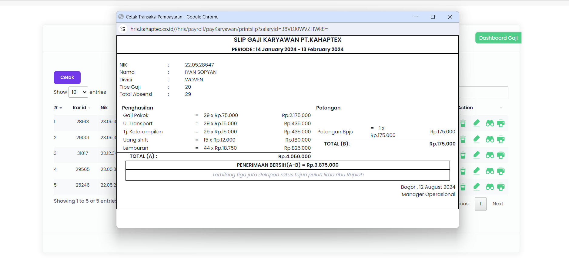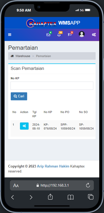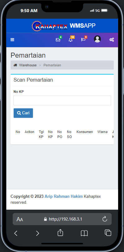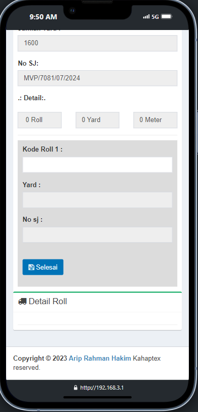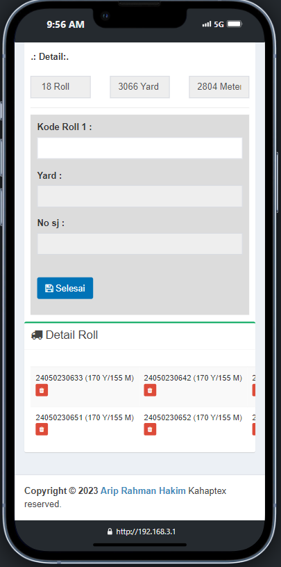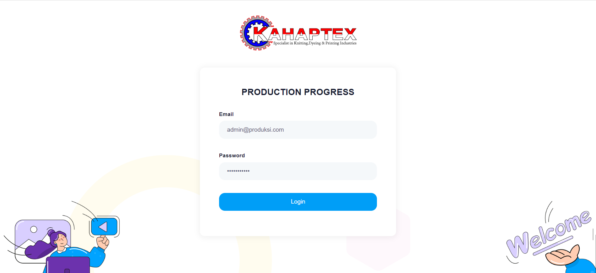Website ini merupakan aplikasi input produksi yang dikembangkan untuk PT Kahaptex Textile menggunakan framework CodeIgniter 3, dengan integrasi jQuery dan database MySQL. Fungsionalitas utama aplikasi ini memungkinkan pengguna untuk memindai QR Code pada setiap Kartu Produksi (KP) dan memulai proses input data. Setiap proses produksi terdiri dari dua tahap, yaitu start dan finish, di mana data ini digunakan oleh admin PPIC untuk memonitor waktu mulai dan selesai dari setiap proses produksi. Setiap KP memiliki tahapan proses yang berbeda, tergantung pada jenis kain yang diproduksi.