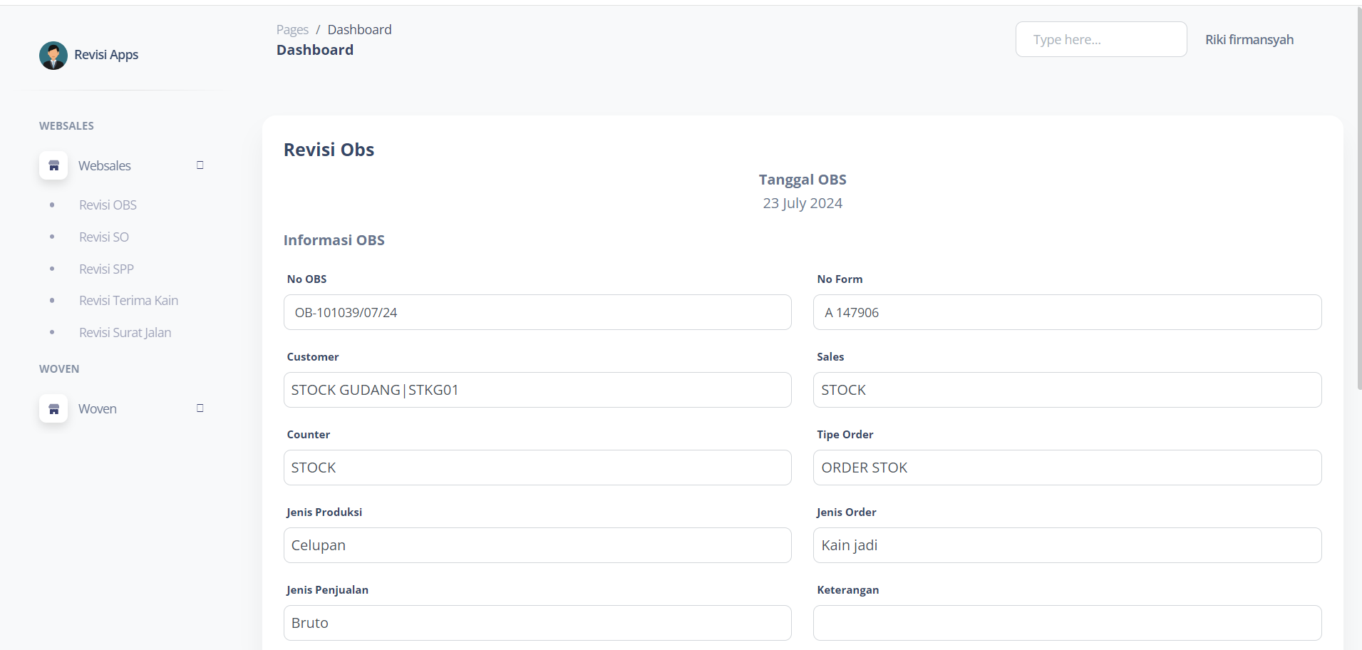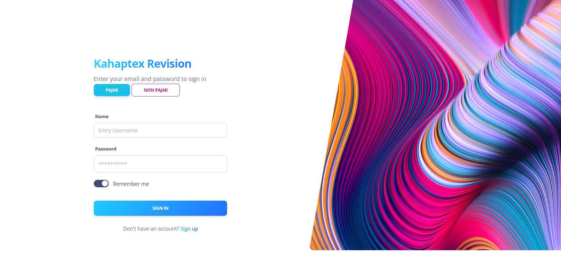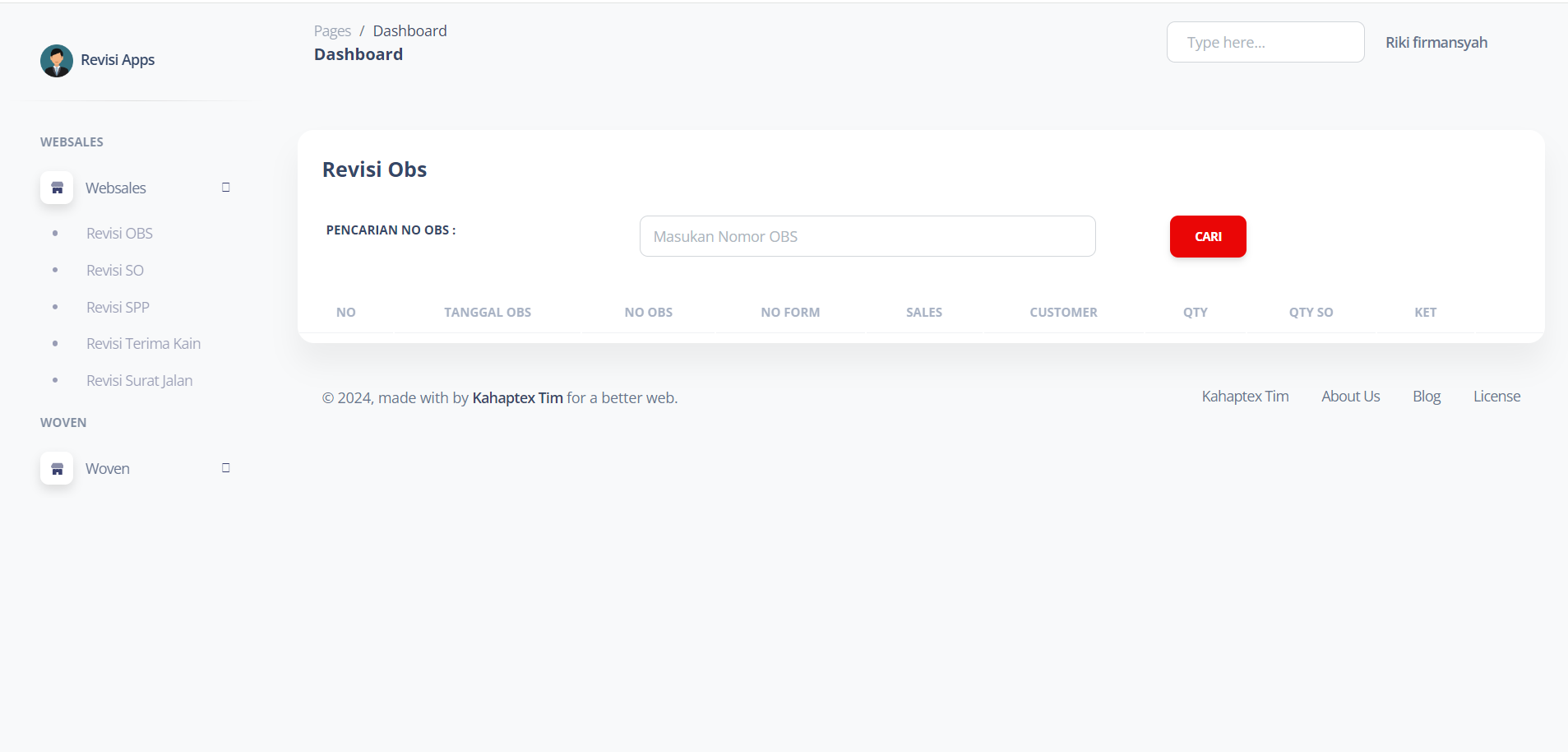 Program revisi ini dirancang untuk memfasilitasi perubahan data terkait pemesanan di PT Kahaptex Textile, baik itu koreksi input data, perubahan kuantitas, atau permintaan revisi lainnya. Aplikasi ini memungkinkan pengguna untuk melakukan revisi secara langsung melalui sistem, memberikan fleksibilitas dalam mengelola data pemesanan. Program ini dibangun menggunakan framework CodeIgniter 3, dipadukan dengan jQuery, dan didukung oleh database MySQL.