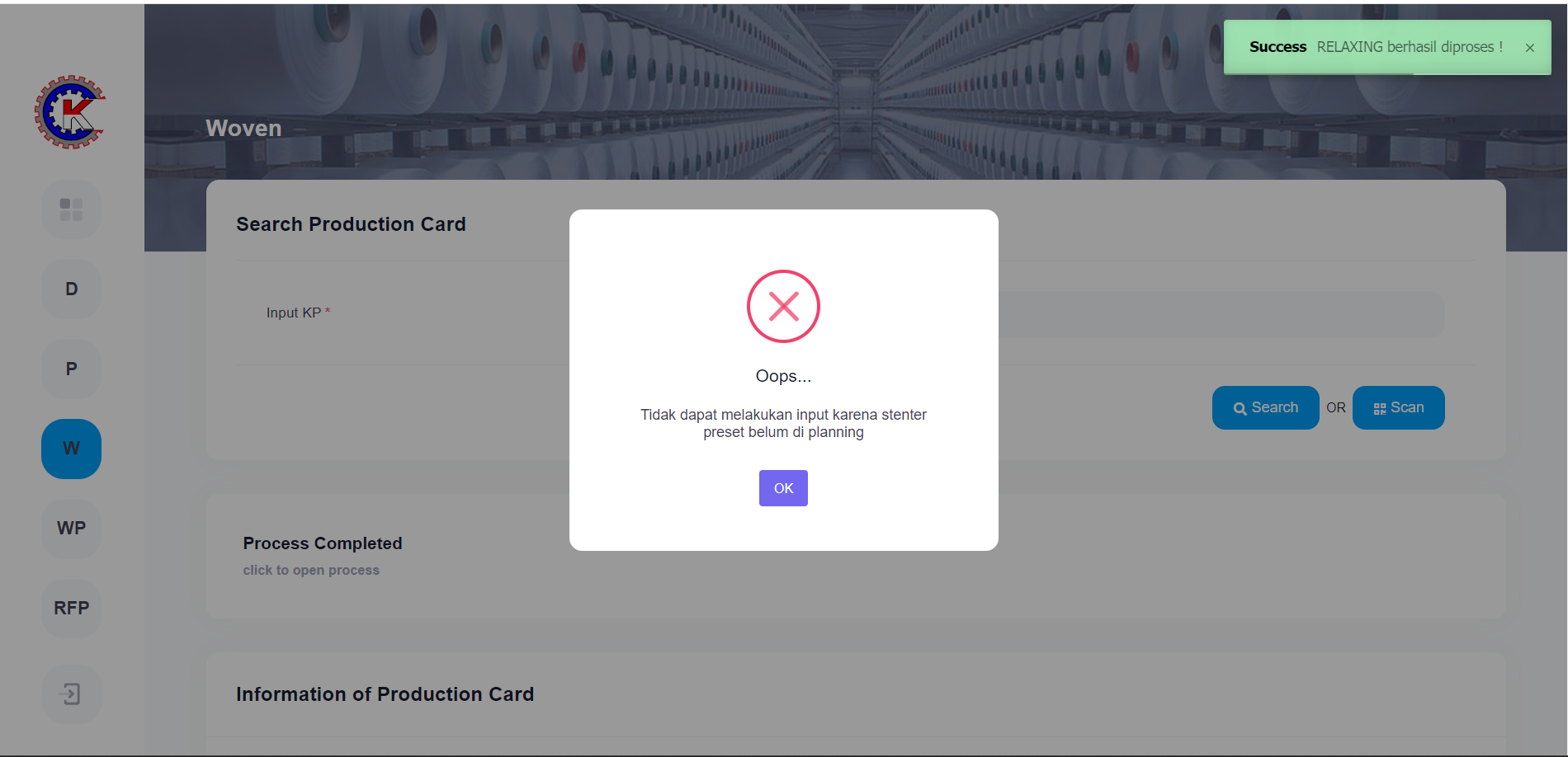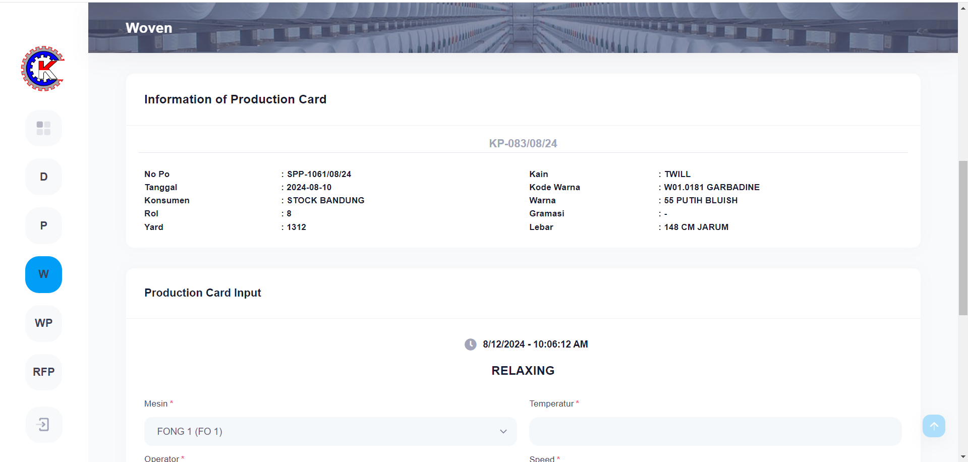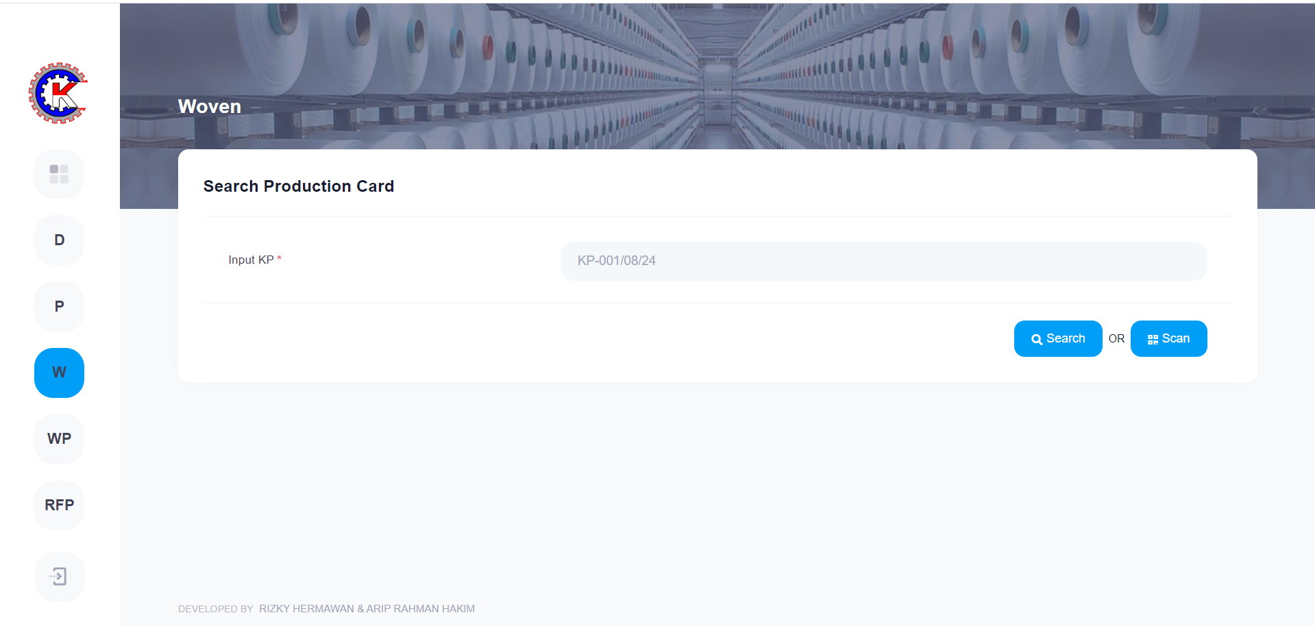 Program ini dirancang untuk memproses input pemartaan woven, di mana pengguna harus melakukan input pemartaan agar stok grey dapat berkurang sesuai kebutuhan. Prosesnya melibatkan setiap roll yang memiliki kode roll berbentuk QR Code, yang berisi informasi kode roll dan yard dari roll tersebut. Pengguna melakukan pemindaian QR Code menggunakan alat pemindai, kemudian program ini membaca kode roll tersebut dan memperbarui data di database untuk mengurangi stok grey woven.