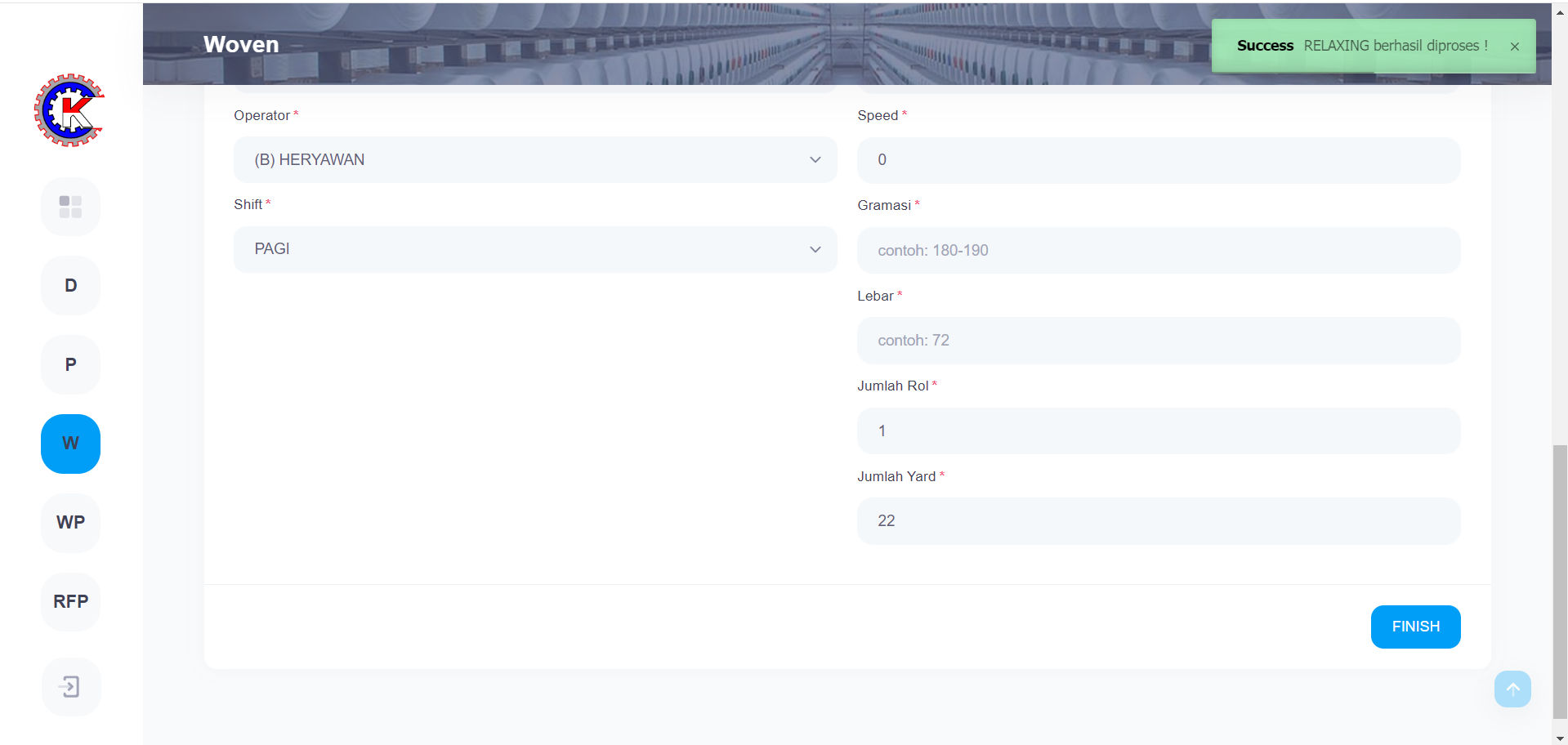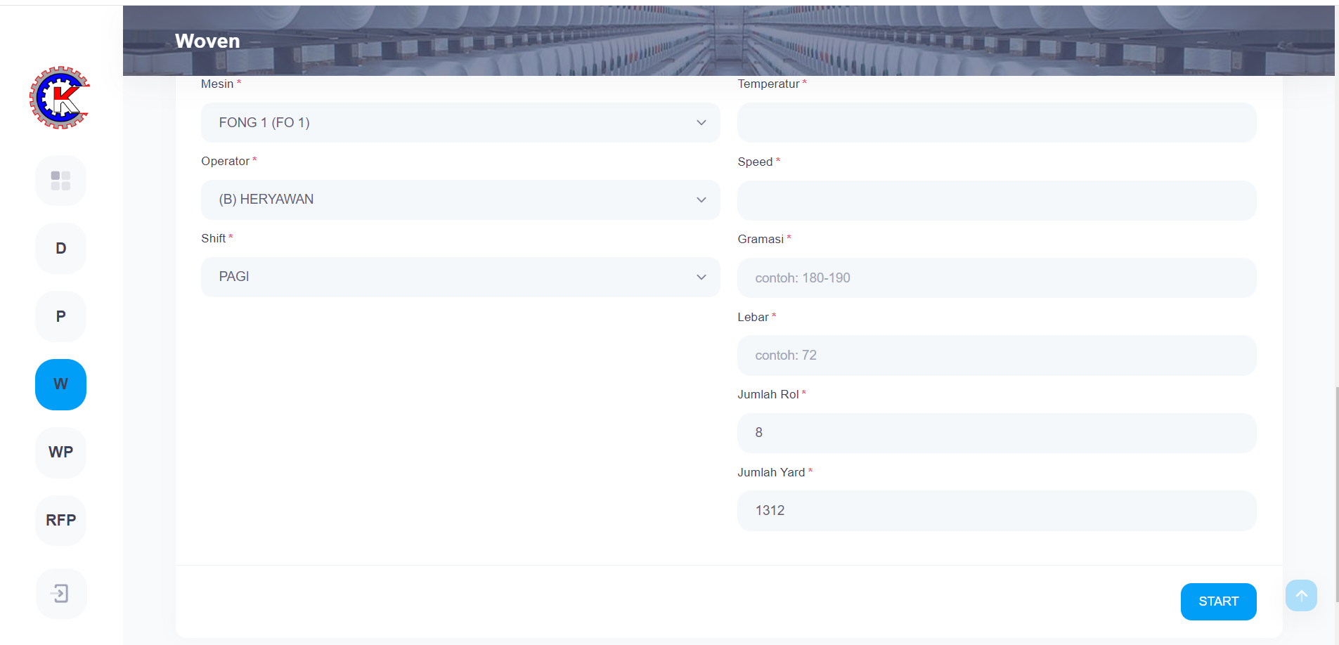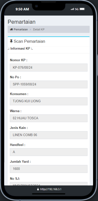 Program ini dirancang untuk memproses input pemartaan woven, di mana pengguna harus melakukan input pemartaan agar stok grey dapat berkurang sesuai kebutuhan. Prosesnya melibatkan setiap roll yang memiliki kode roll berbentuk QR Code, yang berisi informasi kode roll dan yard dari roll tersebut. Pengguna melakukan pemindaian QR Code menggunakan alat pemindai, kemudian program ini membaca kode roll tersebut dan memperbarui data di database untuk mengurangi stok grey woven.